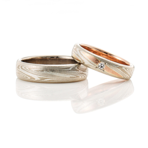ご主人さまの落ち着いた杢目金の指輪に、寄り添うような